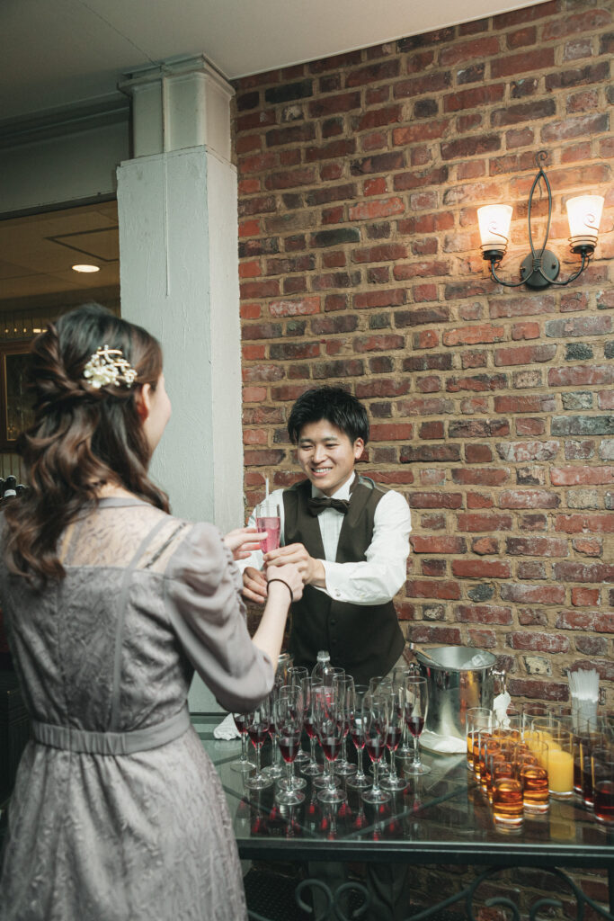 さらに新郎様は、ウェルカムドリンクを手渡ししながらゲストをお出迎え。