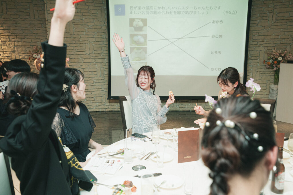 披露宴後半には、新郎様が先生ということにちなんだ「愛Qテスト」を開催。